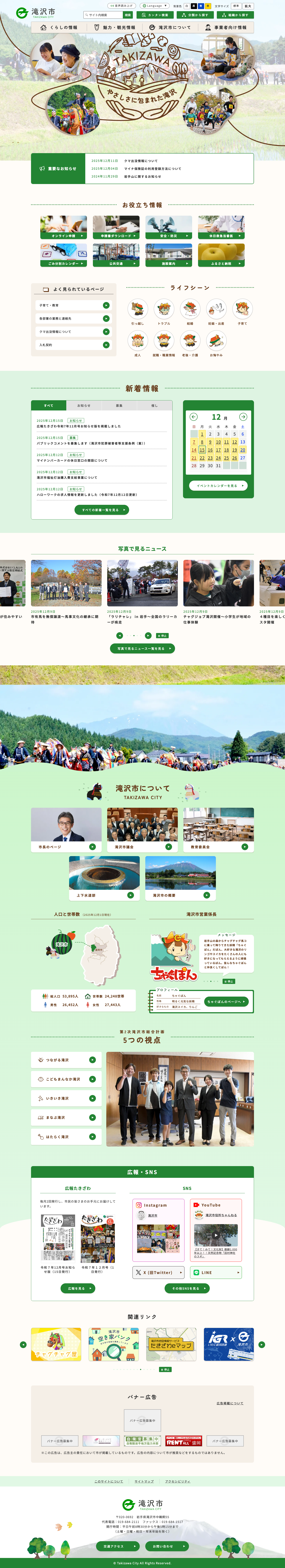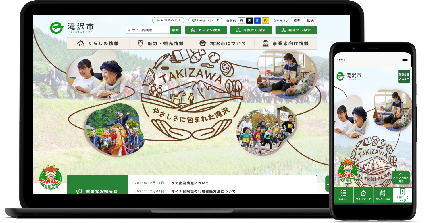 制作事例・実績 滝沢市公式サイト 公開 2025年11月 エリア 岩手 プロジェクト Web制作 カテゴリ 自治体公式サイト Webサイトを見る Webサイト制作 Web制作について 制作フローについて 関連する実績 秋田県建設企業ガイドブック 秋田県建設産業活性化センター様(秋田県 建設部 建設政策課) Web制作 ポータルサイト 秋田市保育士・保育所支援センター 秋田市保育士・保育所支援センター様 Web制作 ポータルサイト 株式会社Gadu 株式会社Gadu Web制作 コーポレートサイト