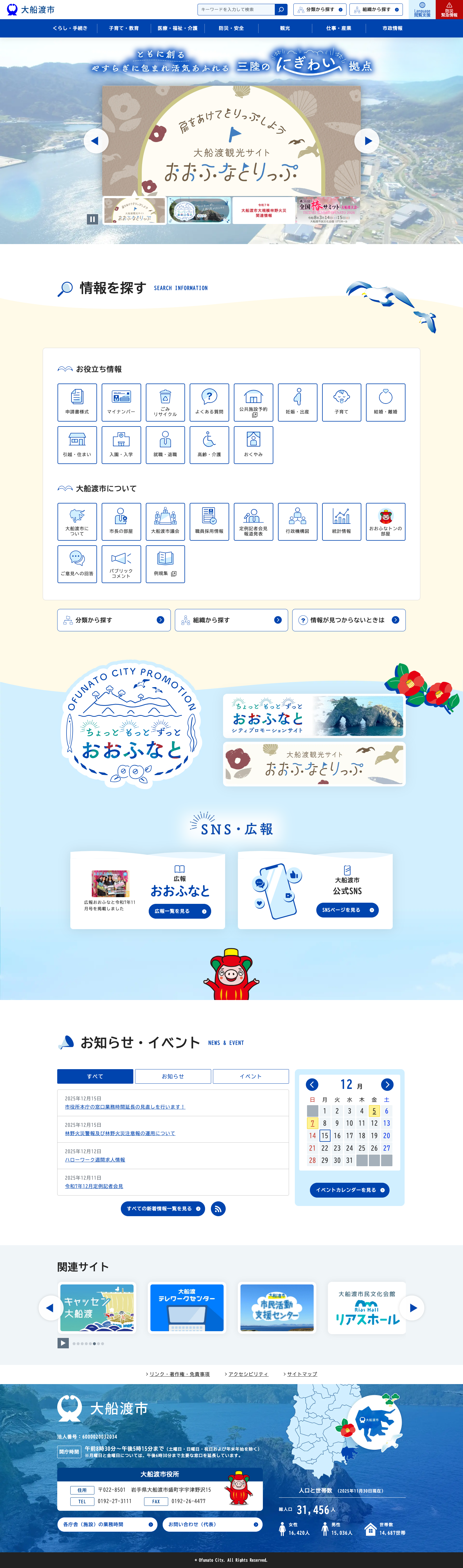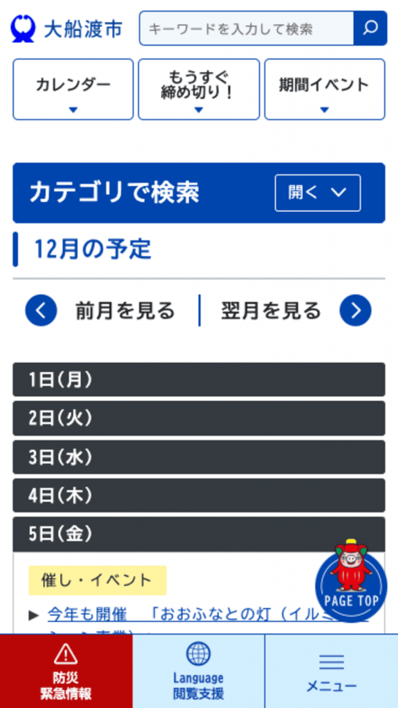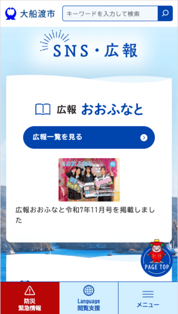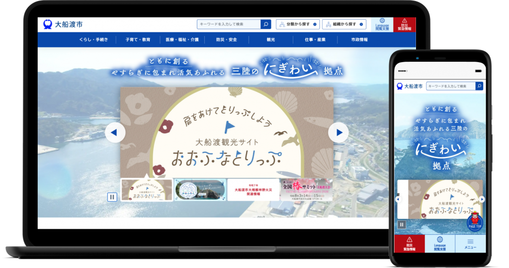 制作事例・実績 大船渡市公式サイト 公開 2025年03月 エリア 岩手 プロジェクト Web制作 カテゴリ 自治体公式サイト Webサイトを見る Webサイト制作 Web制作について 制作フローについて 関連する実績 秋田運送株式会社 秋田運送株式会社様 Web制作 コーポレートサイト 男鹿水族館GAO 男鹿水族館GAO様 Web制作 サービスサイト ALVE(アルヴェ) 秋田市民交流プラザ 秋田市民交流プラザ様 Web制作 ポータルサイト