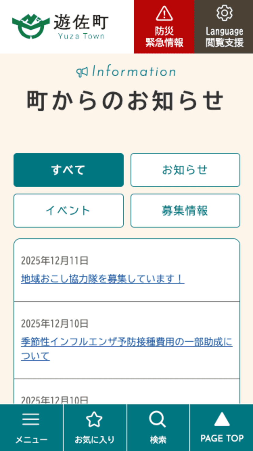制作事例・実績 遊佐町公式サイト 公開 2025年04月 エリア その他 プロジェクト Web制作 カテゴリ 自治体公式サイト Webサイトを見る Webサイト制作 Web制作について 制作フローについて 関連する実績 株式会社アイシーエス 株式会社アイシーエス様 Web制作 コーポレートサイト AKITA DeX 秋田県産業労働部 産業政策課デジタルイノベーション戦略室様 Web制作 ポータルサイト 映像制作 紹介映像 あきた子育て情報 いっしょにねっと。 秋田県あきた未来創造部 次世代・女性活躍支援課様 Web制作 ポータルサイト